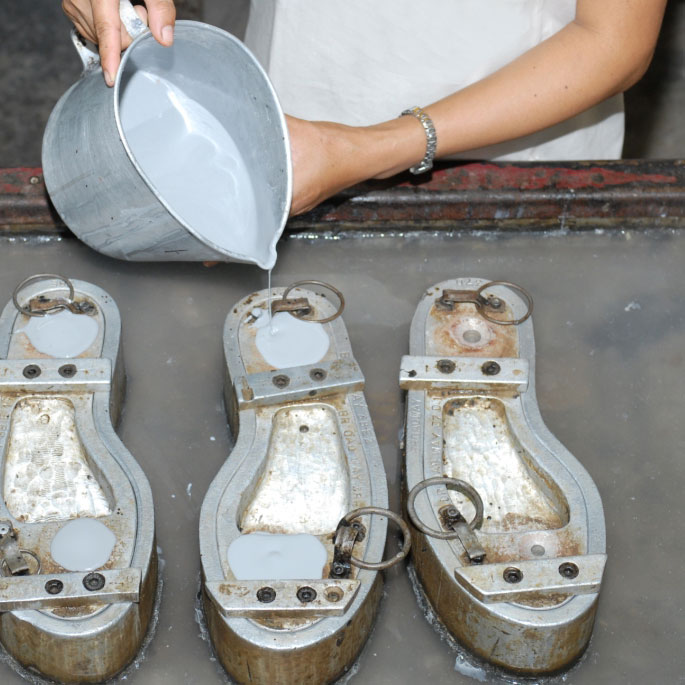 LACTAE HEVEA®鞋底采用一种特殊的工艺流程,生产方式与乳制品提炼方式非常类似: